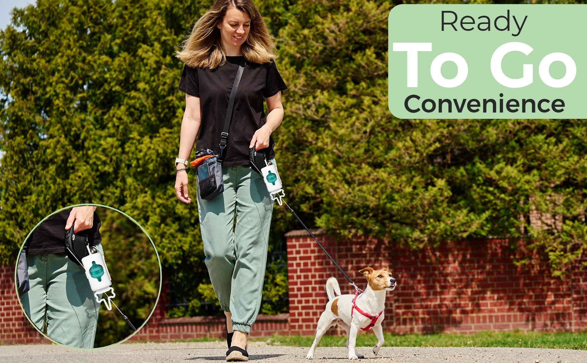 Attach The Doggie Doo onto leash or harness and snap together
